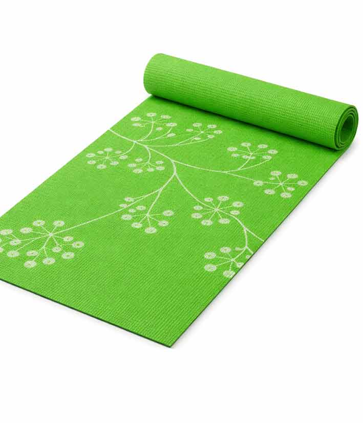 Carpet for yoga or meditation, PVC Green Ecological, non-toxic.Anti-slip, floral patterns, very easy to care for.Waterproof, fast drying and odorless material, with a comfortable thicknessDimensions : 173 cm X 61 cm X 6 mmColor : Green