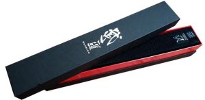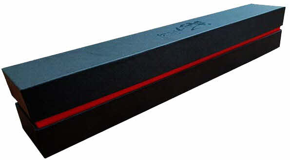 Impresión de plata BUSHIDO en latín e ideograma en la tapa de la caja.