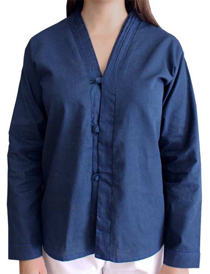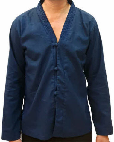 Magnífica túnica con cuello de pico y botones de brandeburgo chinos.