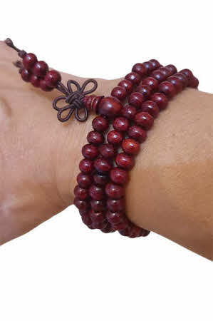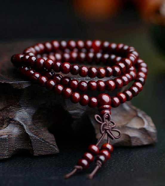 Ce collier de 108 perles en bois d'agar peut être également enroulé autour du poignet pour servir de bracelet.
