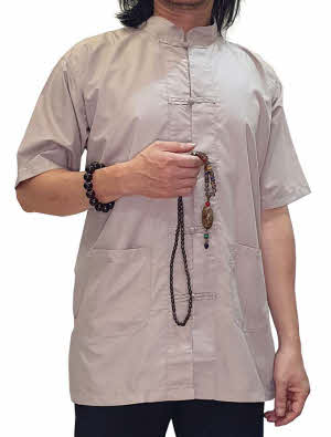 Está abotonado con botones chinos hechos del mismo tejido de seda natural.