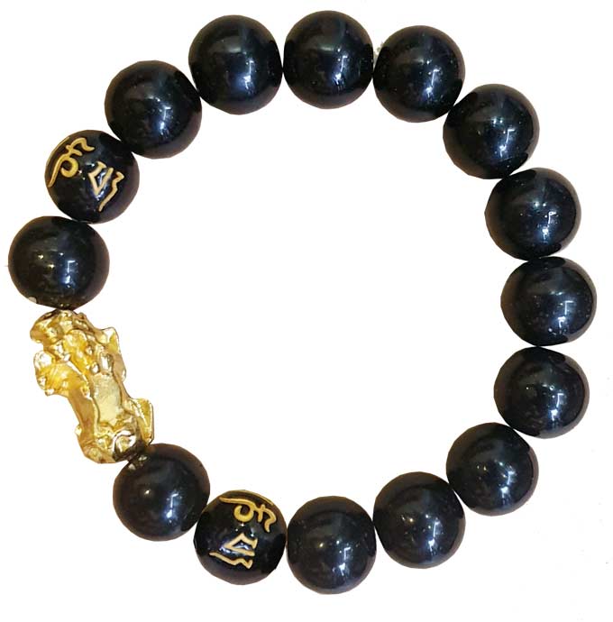 Fabriqué en perle d'obsidienne noire et gravé de diagrammes chinois de couleur or.