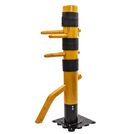 Modèle utilisé en Kung Fu Wing Chun ou Ving Tsun, avec 3 bras et 1 jambe. Repose sur un socle métallique carré, avec ventouses, pour un faible encombrement (Il ne nécessite aucune fixation au mur ou au sol).