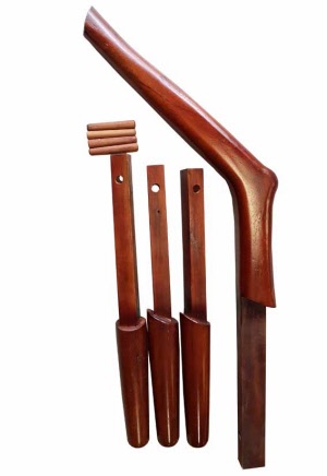 3 bras de 32cm (pour la partie visible), 1 jambe, fabriquée et tailée dans une seule pièce de bois massif.